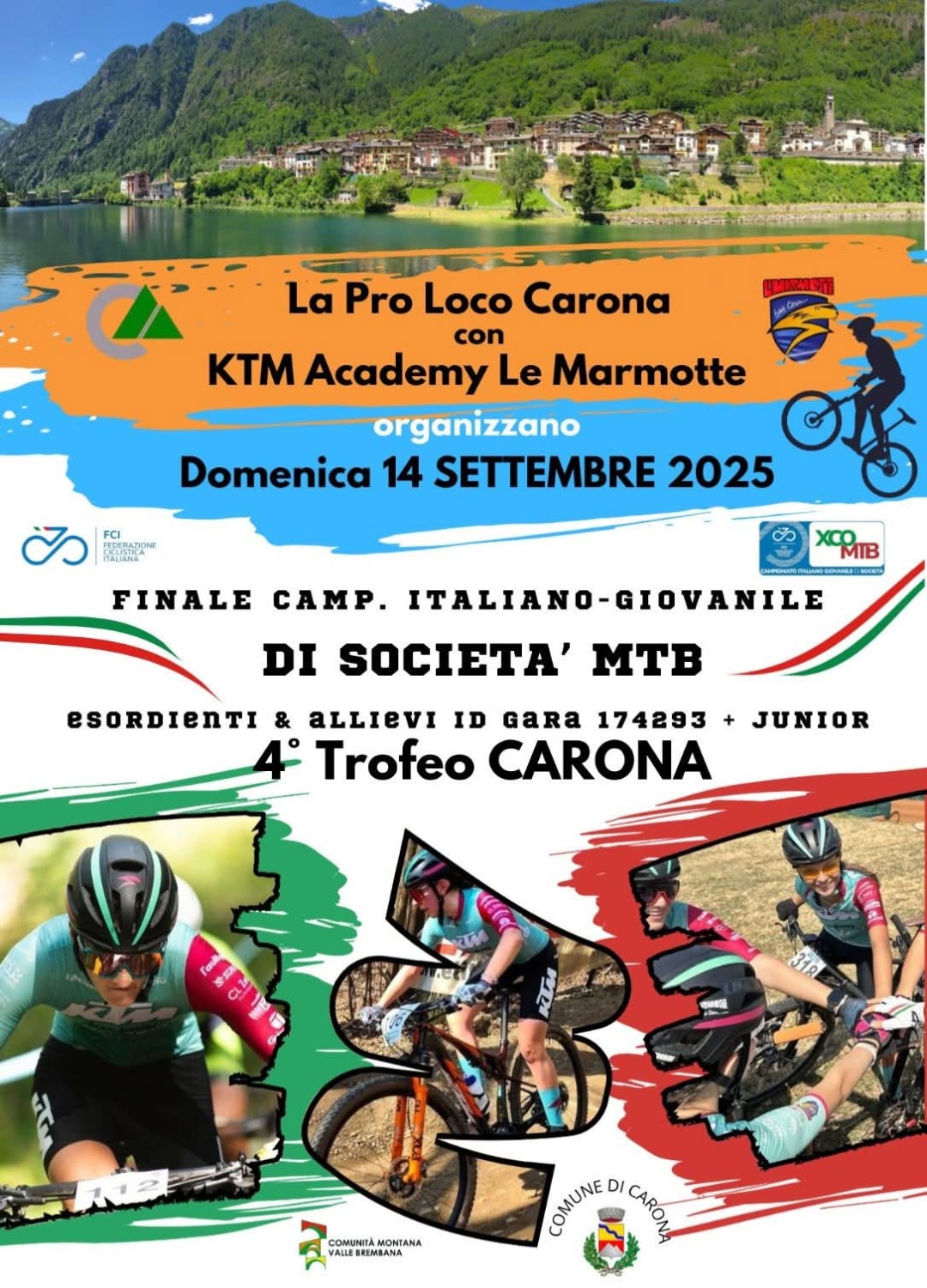 La Pro-loco Carona con KTM Academy Le Marmotte organizzano nella giornata di domenica 14 settembre 2025 la Finale del Campionato Italiano Giovanile di Società MTB.